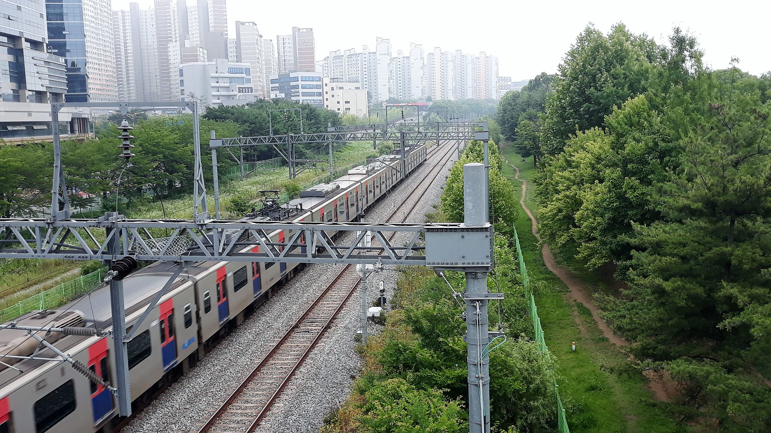 ▲들머리인 우리 집을 나와 ~ 일산교 위에서 경의 중앙선 전철을 봅니다 ~