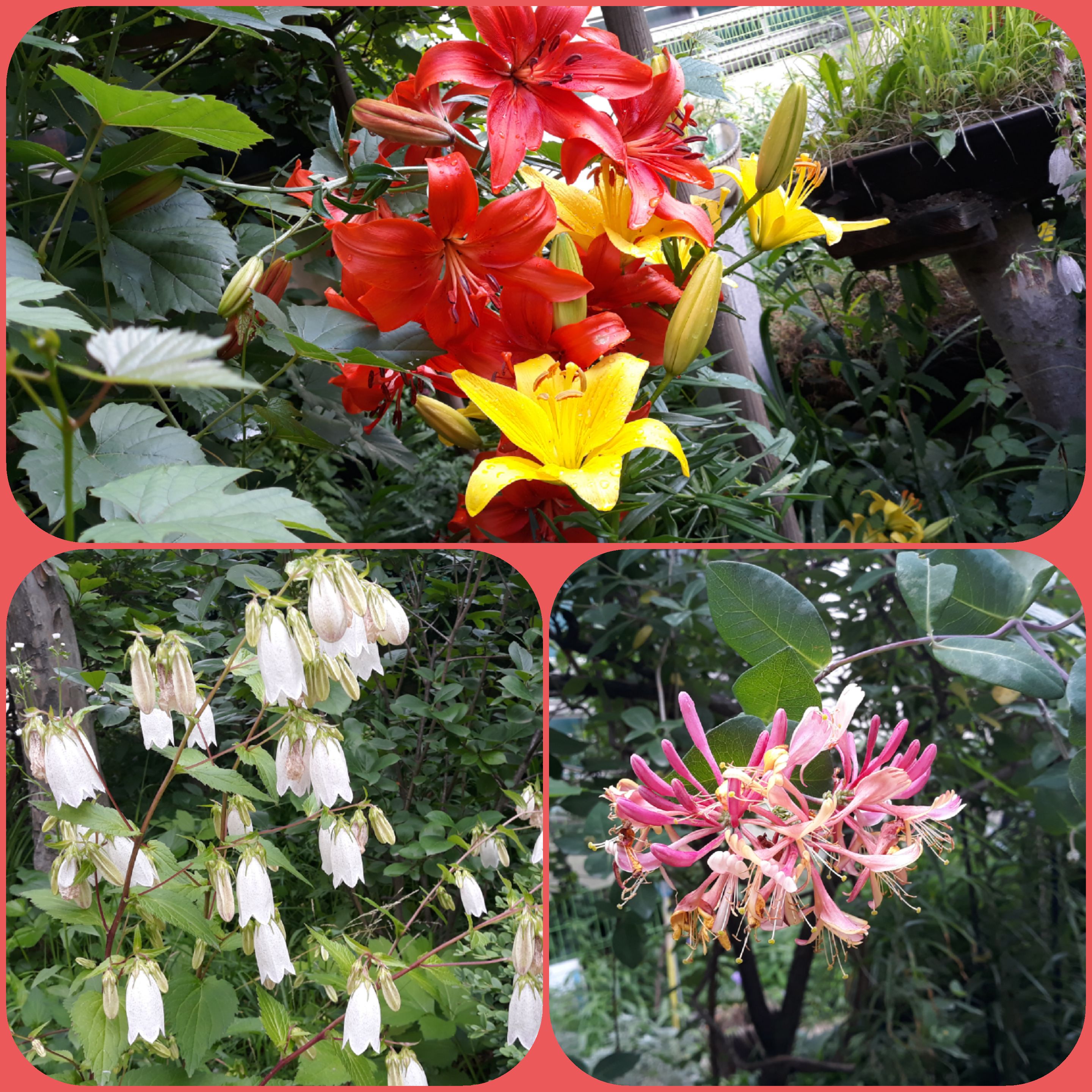 ▲나리꽃. 초롱꽃. 붉은인동