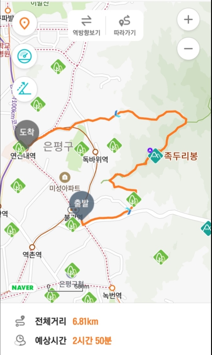 ▲향로봉 5 거리 ~ 연신내역 방향 불광공원 지킴터로...