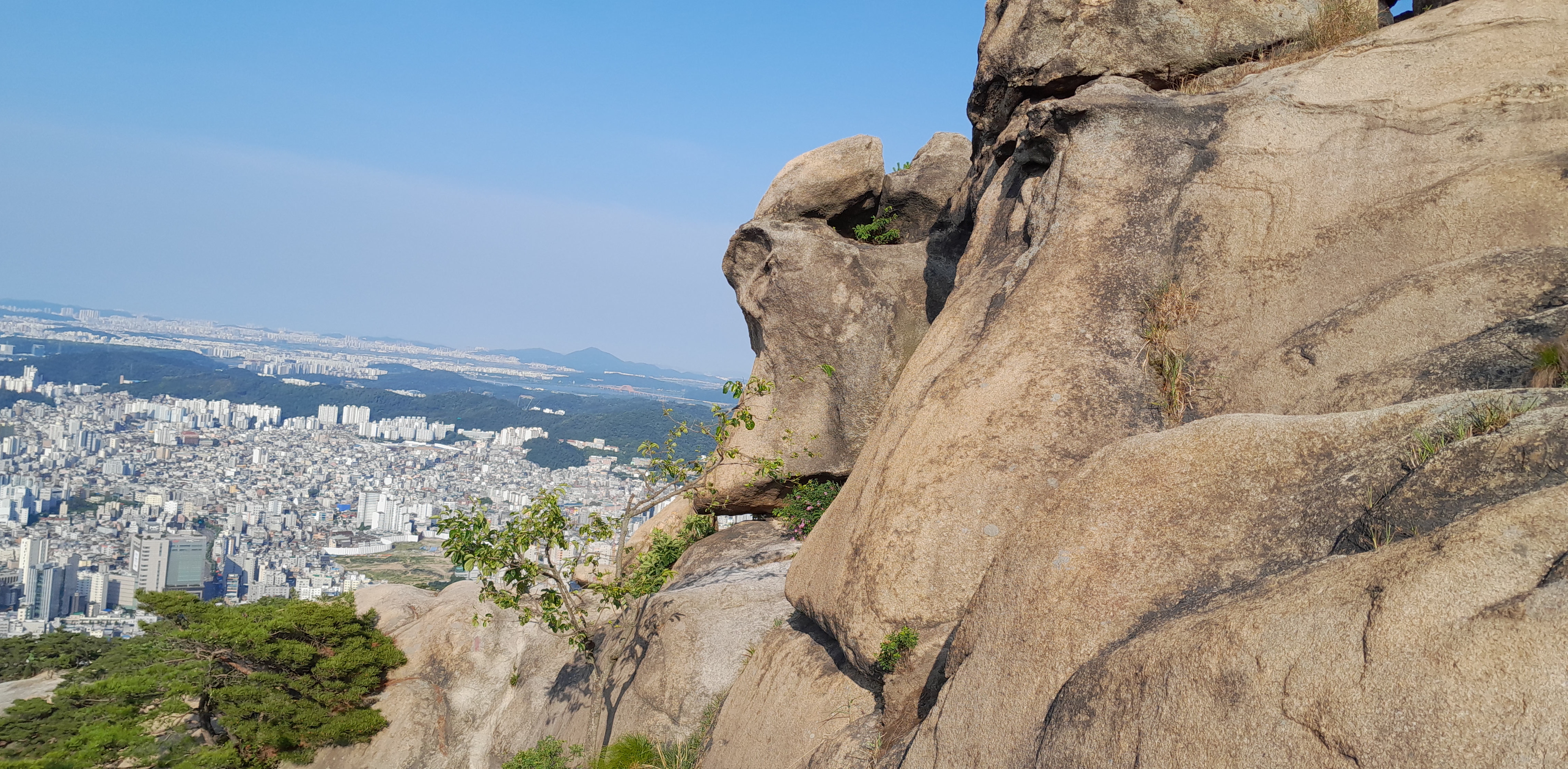 ▲거대 바위 밑 싸리꽃
