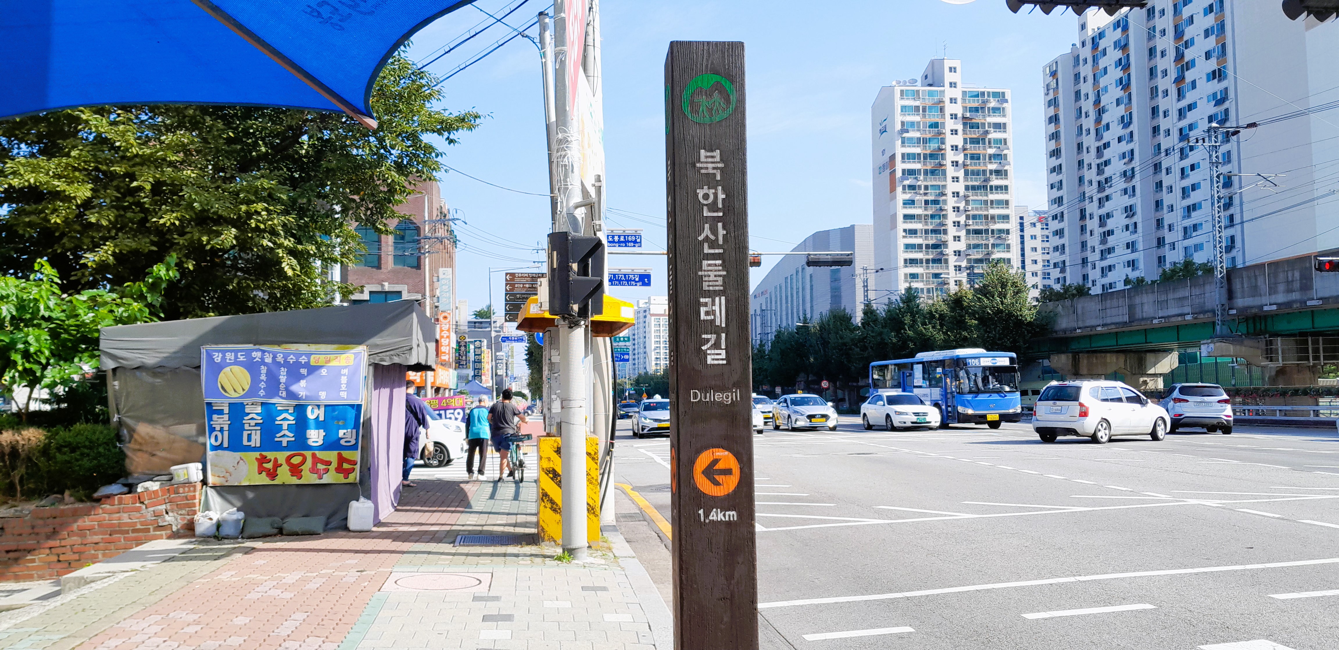 ▲들머리인 도봉역 2번 출구 ~ 신호를 건너 무수천 따라갑니다