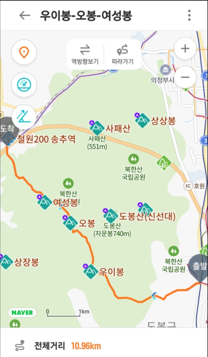 산행코스 : 도봉역~무수천~무수골~원통사~우이봉~오봉~여성봉~오봉탐방지원센터