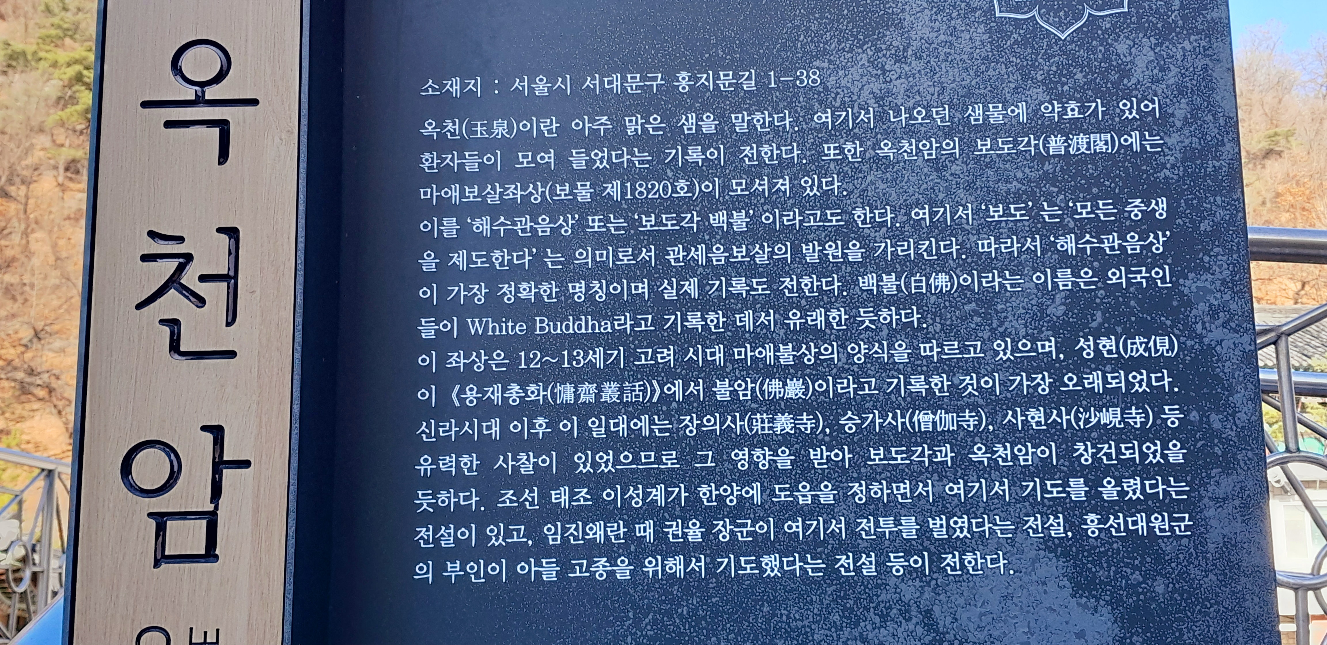 ↕ 옥천암 보도각 "마애보살좌상" 보물 1802호