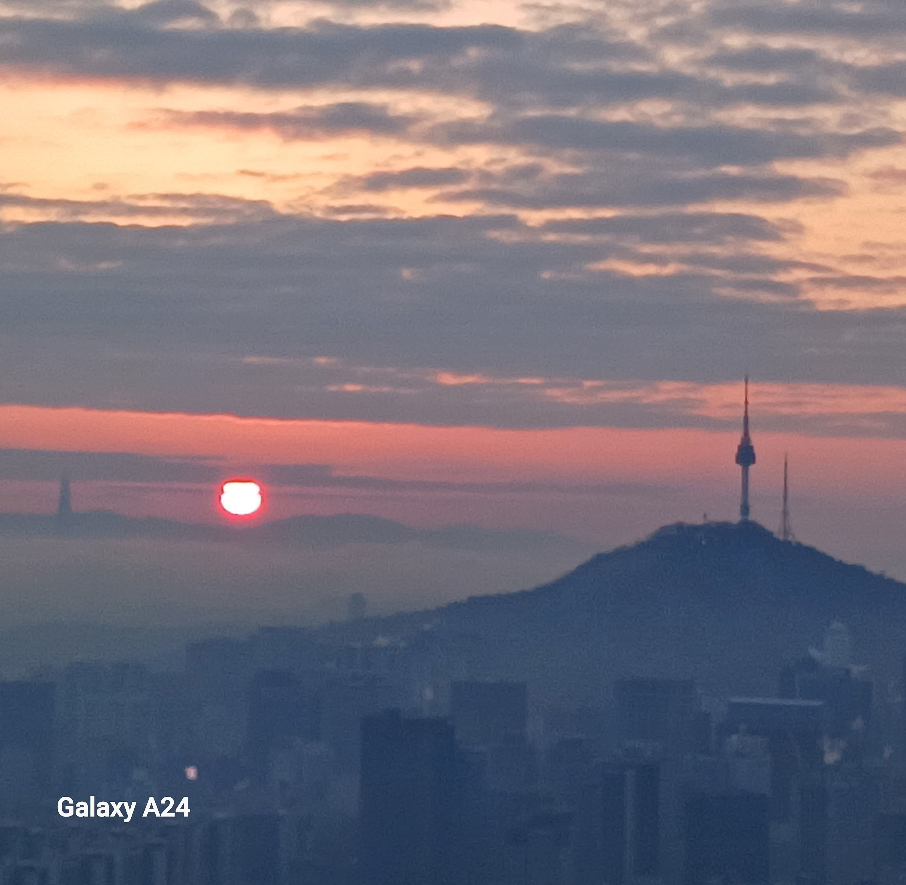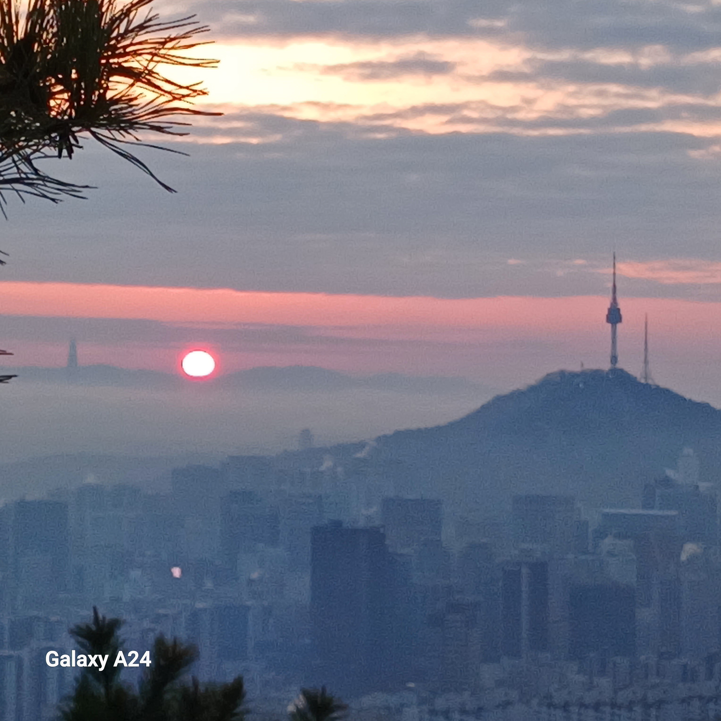 ▲어렵게 자리를 잡고 일출을 즐깁니다... 남산타워옆으로 올라오네요