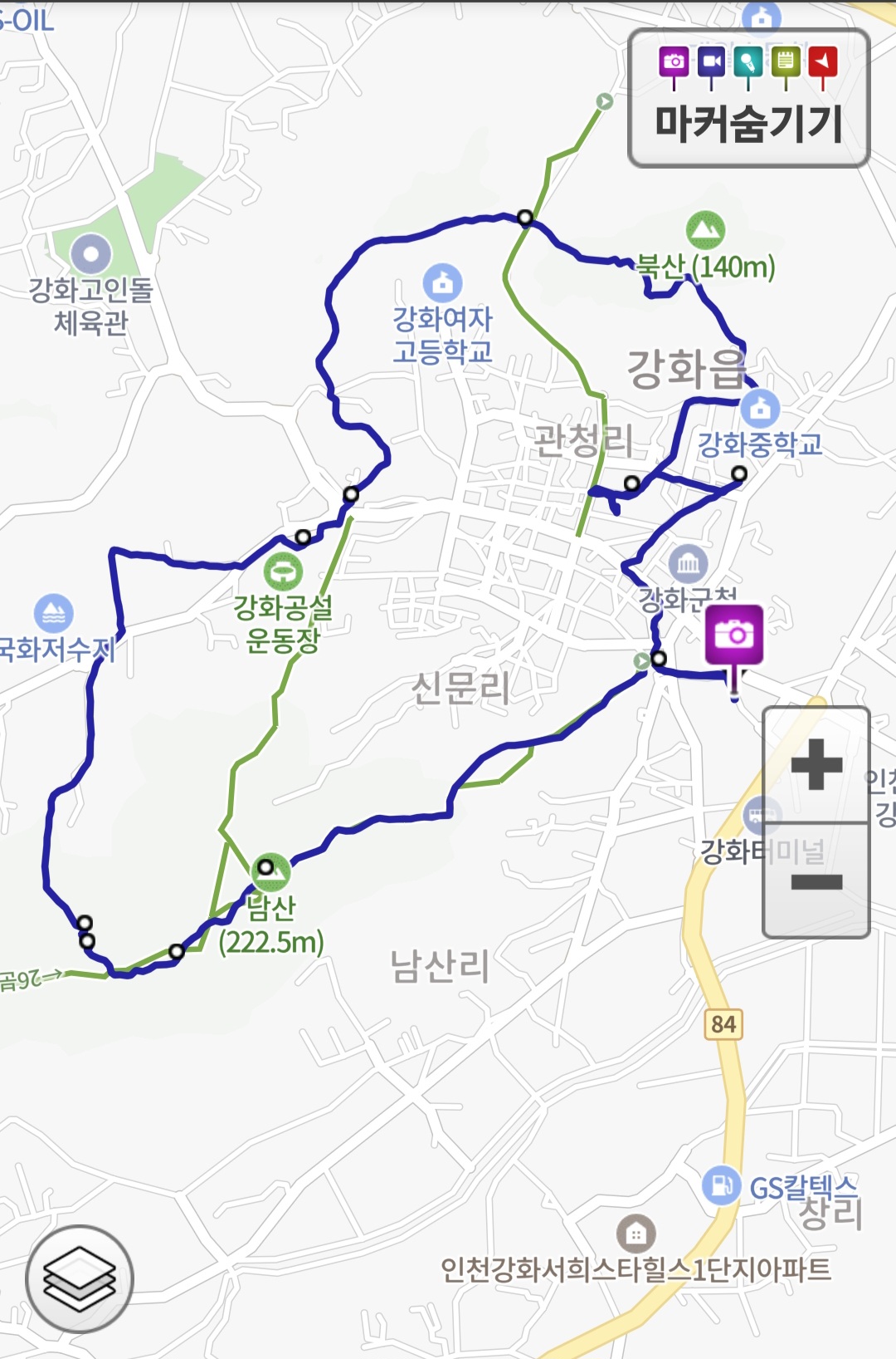 탐방코스 : 강화군노외공영주차장~남문~남산. 남장대~국화리 저수지~서문~북문~북장대 터~성공회성당~용흥궁~동문~주차장