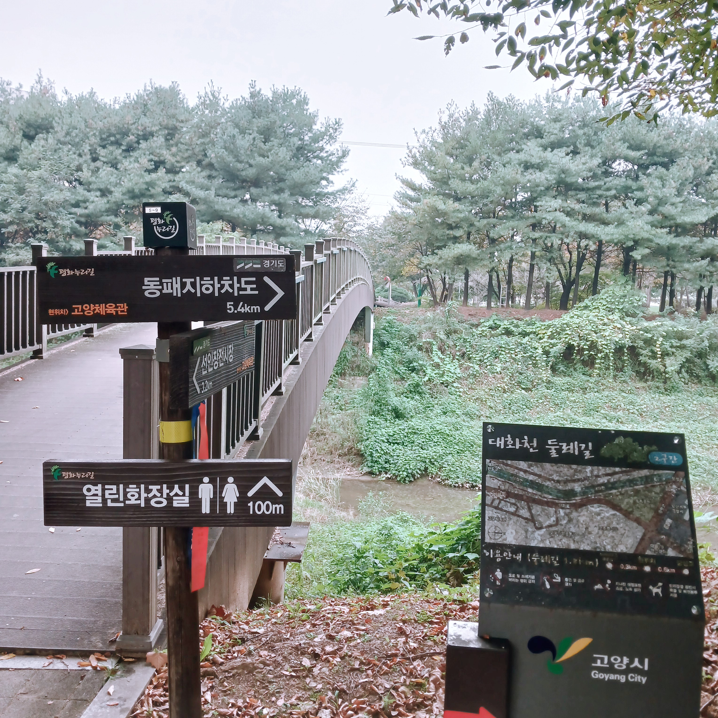 오늘은 아내와 드림파크 야생화단지(인천 서구)를 가려고 했으나 아침부터 흐린 날씨에 비소식도 있군요, 다음에 날씨 좋은 날 가자고 미루고 오후 되니 비소식도 없는듯해 가까운 대화천 둘레길을 걷고 왔습니다( 9도 / 17도)