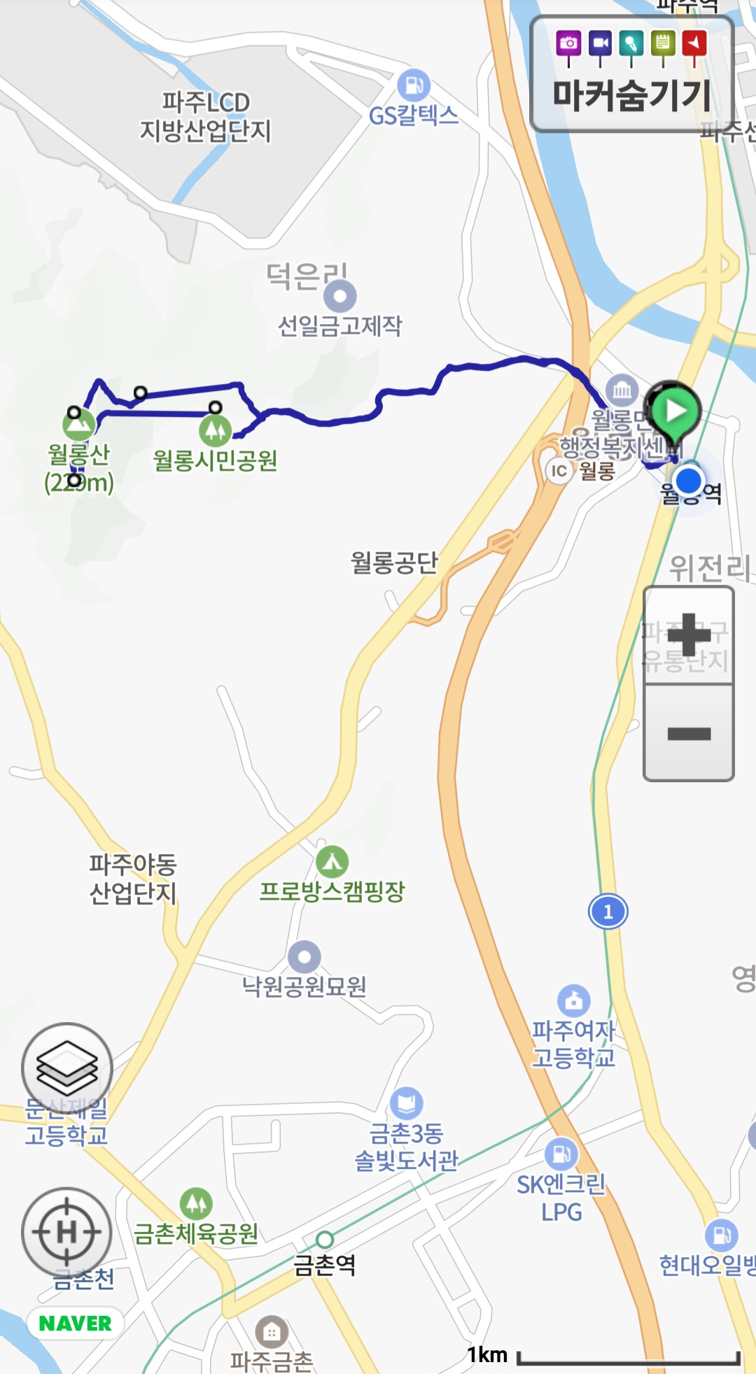 산행코스 : 월롱역~용주서원~정상~용상사~월롱시민공원. 배수지~용주서원~월롱역