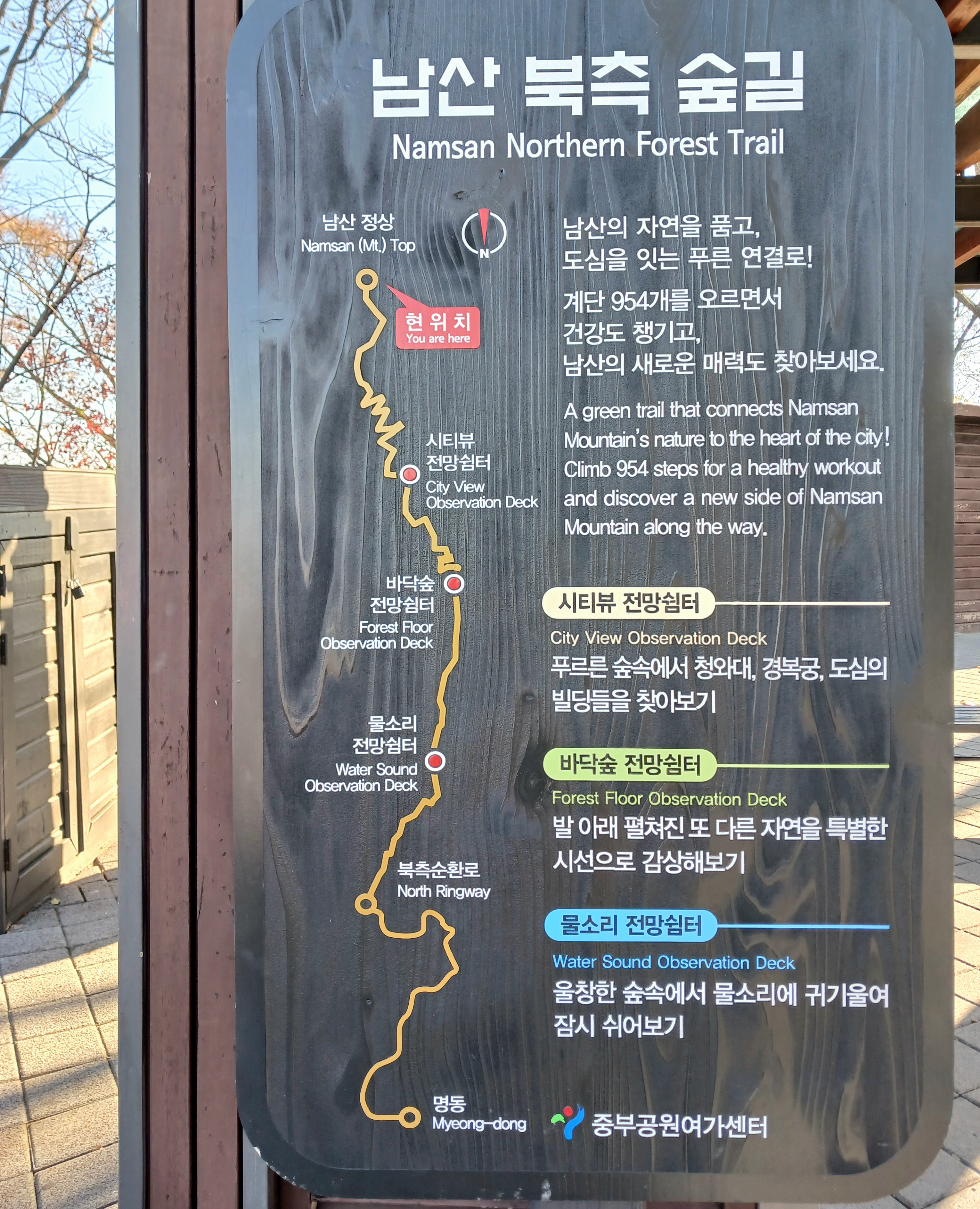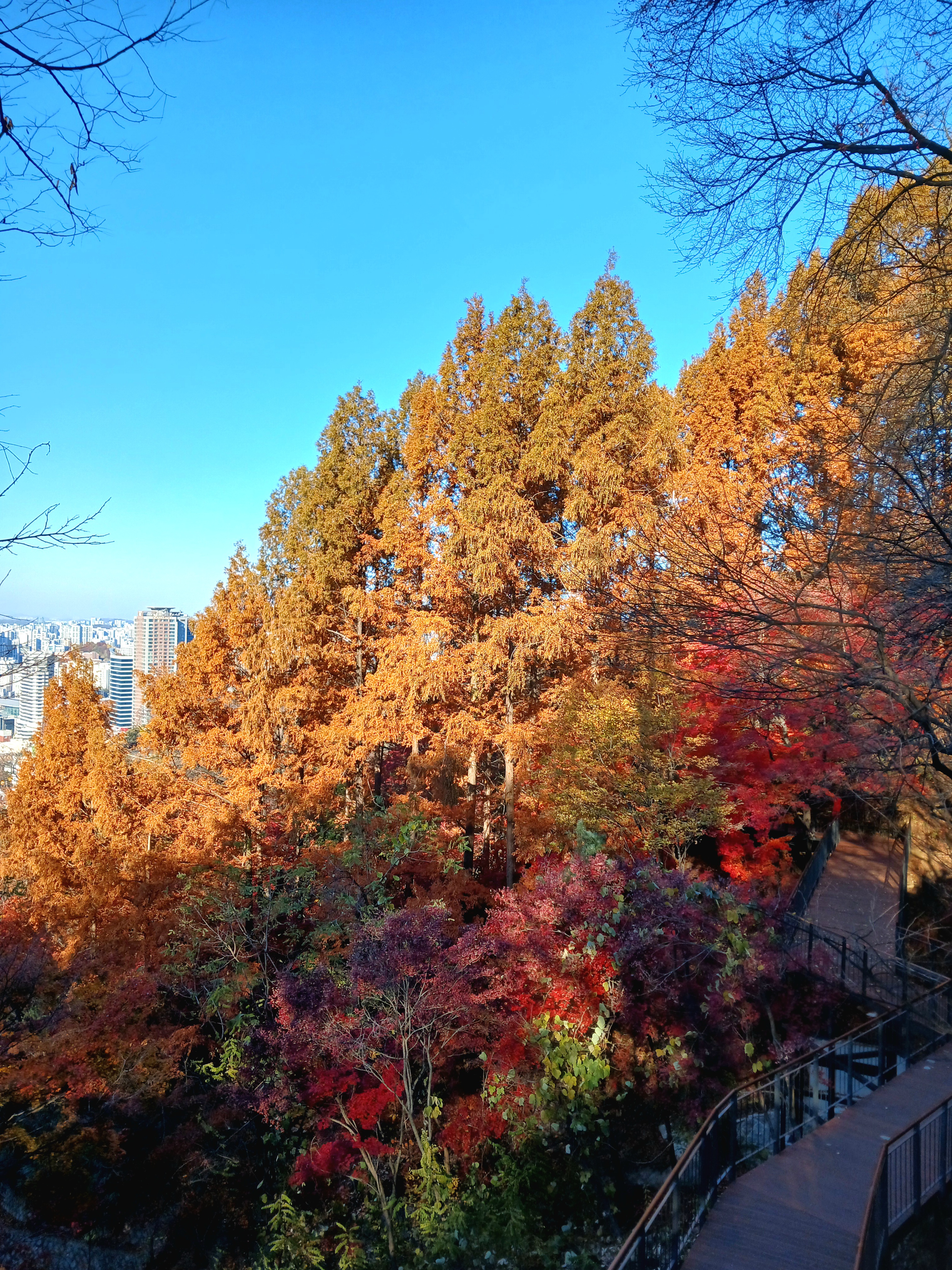 일주일 만에 남산을 다시 찾았습니다. 오늘은 무장애 길인 하늘숲길과 북측 숲길을 함께 걸어보러 갔습니다. 아직도 남산 단풍은 화려합니다( 영하4도 / 6도)