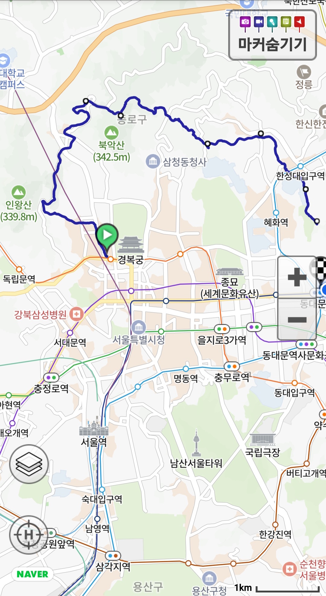 산행코스 : 경복궁역~수성동계곡~창의문~청운대~숙정문~혜화문~낙산공원~흥인지문~동대문역